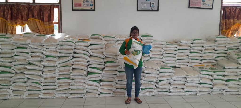 Penyaluran Beras CBP dari Ketapang oleh Bulog, alokasi bulan Maret 202 di Kecamatan Parmaksian pada hari Selasa, 19 Maret 2024.